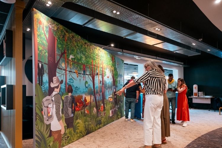 Un support qui ne passe pas inaperçu : une toile tendue et auto-portée pour transformer les espaces d'attente et de passage en lieux de communication visuelle pédagogique. Ces fresques interactives proposent un challenge digital pour faire vivre aux équipes un temps fort sur les enjeux de prévention santé / sécurité. Un dispositif impactant qui embellit vos espaces et sublime vos évènements.